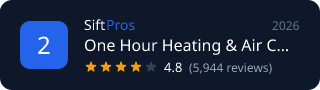 <img src="https://siftpros.com/api/badge/charlotte/hvac/one-hour-heating-air-conditioning-of-charlotte" alt="One Hour Heating & Air Conditioning of Charlotte - Ranked #2 on SiftPros" width="320" height="90" />