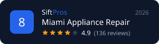 <img src="https://siftpros.com/api/badge/miami/appliance-repair/miami-appliance-repair" alt="Miami Appliance Repair - Ranked #8 on SiftPros" width="320" height="90" />