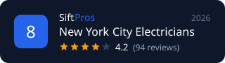 <img src="https://siftpros.com/api/badge/nyc/electrician/new-york-city-electricians" alt="New York City Electricians - Ranked #8 on SiftPros" width="320" height="90" />