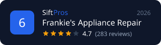 <img src="https://siftpros.com/api/badge/austin/appliance-repair/frankies-appliance-repair" alt="Frankie's Appliance Repair - Ranked #6 on SiftPros" width="320" height="90" />
