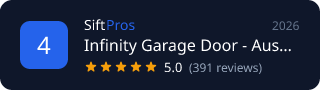 <img src="https://siftpros.com/api/badge/austin/garage-door/infinity-garage-door-austin-garage-door-repair" alt="Infinity Garage Door - Austin Garage Door Repair - Ranked #4 on SiftPros" width="320" height="90" />