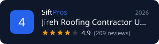 <img src="https://siftpros.com/api/badge/miami/roofing/jireh-roofing-contractor-usa-inc" alt="Jireh Roofing Contractor USA, INC - Ranked #4 on SiftPros" width="320" height="90" />