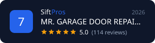 <img src="https://siftpros.com/api/badge/nyc/garage-door/mr-garage-door-repairman-inc" alt="MR. GARAGE DOOR REPAIRMAN INC. - Ranked #7 on SiftPros" width="320" height="90" />