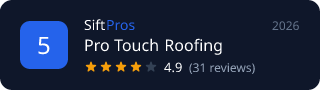 <img src="https://siftpros.com/api/badge/nyc/roofing/pro-touch-roofing" alt="Pro Touch Roofing - Ranked #5 on SiftPros" width="320" height="90" />